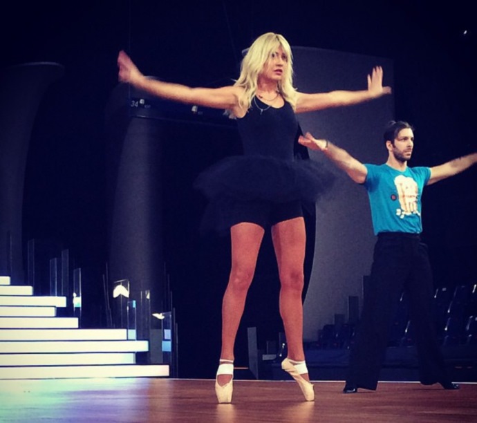 Η 35χρονη παρουσιάστρια, μοιράστηκε μερικά στιγμιότυπα από την προετοιμασία της χορογραφία της, που επιμελήθηκε η γνωστή χορογράφος και κριτής του σόου χορού, Γκαλένα Βελίκοβα.