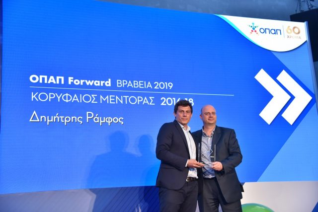 Ο ΟΠΑΠ βράβευσε, επίσης, τον μέντορα που είχε την πιο ενεργή συμμετοχή στο πρόγραμμα, προσφέροντας τις περισσότερες ώρες συμβουλευτικών ωρών στις συμμετέχουσες εταιρείες από 2016 έως σήμερα. Το βραβείο «Κορυφαίος Μέντορας 2016-2018» απονεμήθηκε στον Chief Buyer της εταιρείας Σκλαβενίτης, Δημήτρη Ράμφο.