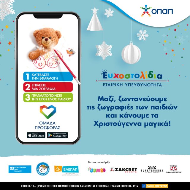 Με τη βοήθεια όλων μας, μέσα από την πρωτοβουλία Ευχοστολίδια που υλοποιείται από τον ΟΠΑΠ για έβδομη συνεχή χρονιά, έχουν πραγματοποιηθεί μέχρι σήμερα 32.319 παιδικές ευχές.