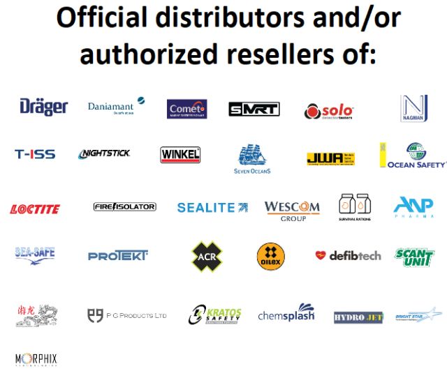 Ο όμιλος είναι επίσης επίσημος διανομέας ή/και μεταπωλητής ορισμένων από τα πλέον αναγνωρισμένα brands στην ναυτιλία, όπως Dräger, Comet, Daniamant, Brightstar, Wolf, T-ISS, Oilex, Solo, Maco, Loctite, Hammar και πολλά άλλα.