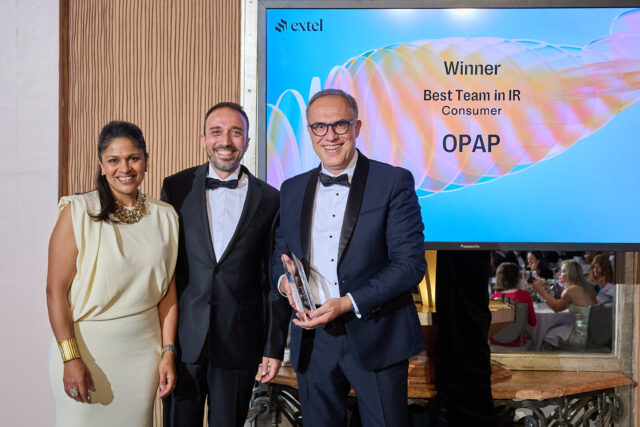 Το βραβείο «Best Team in IR», Αναδυόμενων Αγορών (EMEA), Large Cap, Consumer Sector, απέσπασε η Ομάδα Επενδυτικών Σχέσεων του ΟΠΑΠ, στο πλαίσιο των βραβείων 2025 Europe & Emerging EMEA Equities Awards, που διοργάνωσε στο Λονδίνο η Extel.