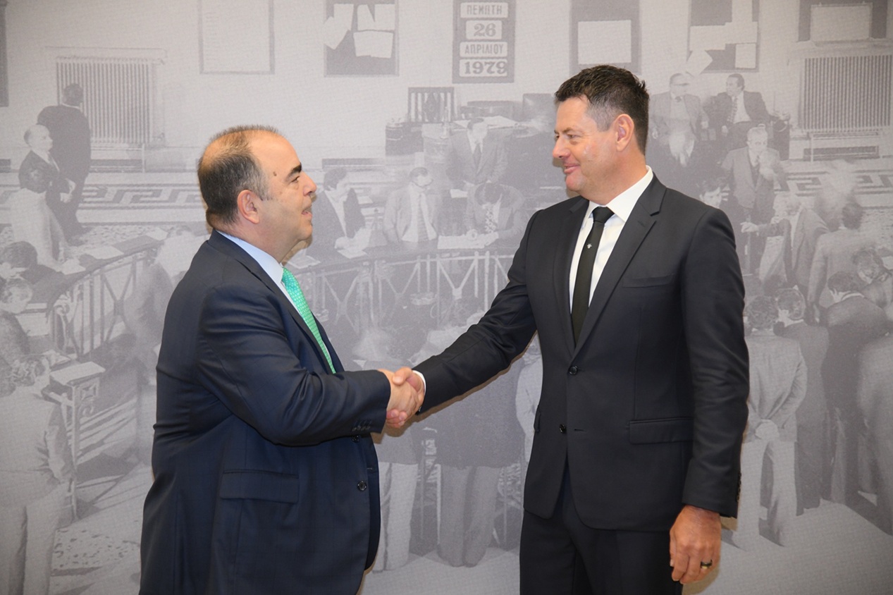 Ο Γιάννoς Κοντόπουλος, Διευθύνων Σύμβουλος του Ομίλου Χρηματιστηρίου Αθηνών, με τον Karel Komarek, Ιδρυτή και Πρόεδρο της Allwyn