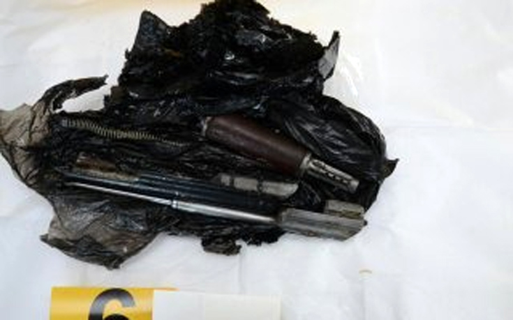 Όπλα και άλλα αντικείμενα, όπως πλαστικές μάσκες, πλαστικά καλύμματα χεριών, αλεξίσφαιρο γιλέκο αστυνομικού κ.ά. βρέθηκαν κατά τη διάρκεια των ερευνών της Αντιτρομοκρατικής Υπηρεσίας στον υπαίθριο χώρο της αγροικίας στο Μώλο και κατασχέθηκαν.