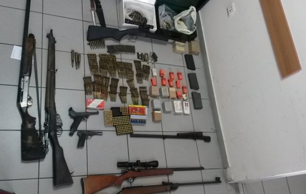 Η αστυνομία αξιοποίησε πληροφορίες και πραγματοποιήσε έρευνα παρουσία δικαστικού λειτουργού στο σπίτι του 58χρονου, όπου βρέθηκαν και κατασχέθηκαν -μεταξύ άλλων- ένα πολεμικό τυφέκιο, ένα πιστόλι, δύο κυνηγετικά όπλα, βλήματα και φυσίγγια διαφόρων τύπων και διαμετρημάτων.