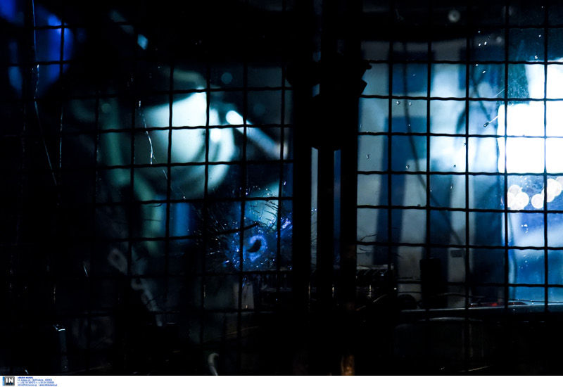 Δύο σφαίρες τρύπησαν το παρμπρίζ του λεωφορείου, ενώ μια καρφώθηκε στο κτήριο του ΠΑΣΟΚ.