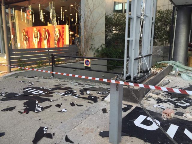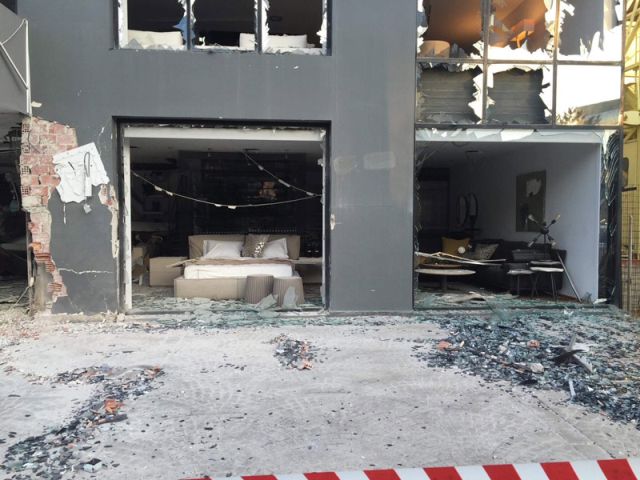 Από την έκρηξη προκλήθηκαν μόνο υλικές ζημιές στο κατάστημα.
