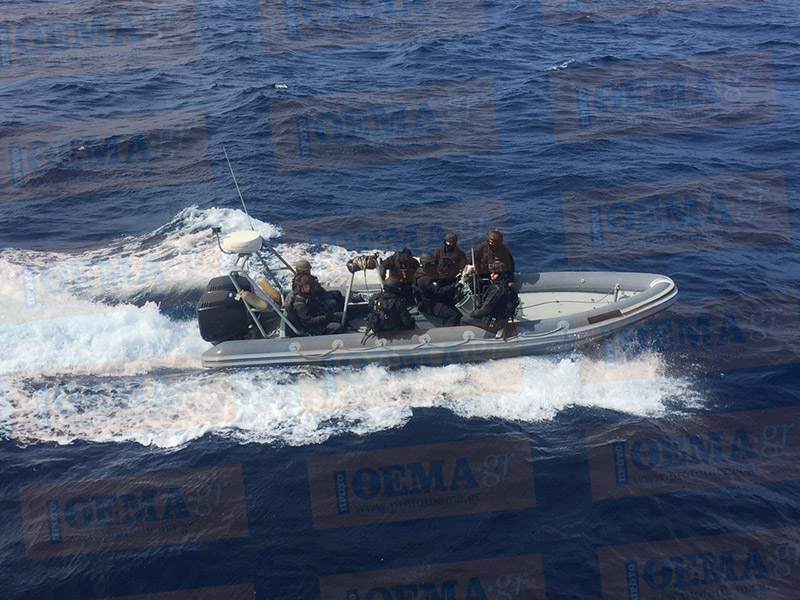 Οι άνδρες του πληρώματος βρίσκονται στο Λιμεναρχείο μετά και τη σύλληψή τους.