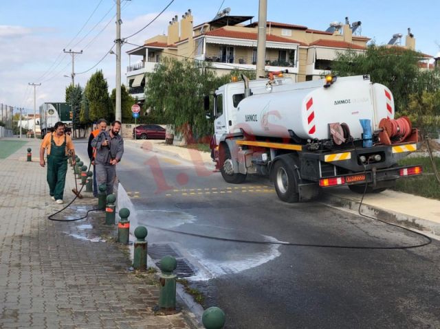 Μάλιστα, όπως φαίνεται, στο σημείο βρέθηκε και μια υδροφόρα του δήμου προκειμένου να καθαρίσει τον δρόμο και το πεζοδρόμιο από τα αίματα.