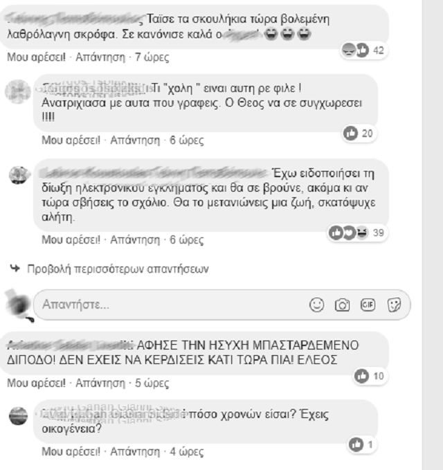 Ευτυχώς υπάρχουν και υγιείς αντιδράσεις καθώς κάτω από τα επίμαχα σχόλια που βλέπετε παρακάτω, είναι πολλοί εκείνοι που απαντούν στα άθλια σχόλια.