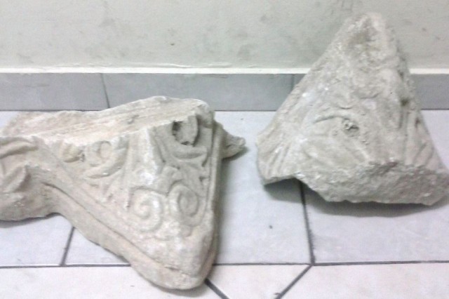 Επίσης σε έρευνα στην οικία του συλληφθέντα, σε περιοχή της Κορινθίας, βρέθηκαν και κατασχέθηκαν μαρμάρινο κιονόκρανο παλαιοχριστιανικής περιόδου κορινθιακού ρυθμού, διαστάσεων 0,50 m ύψος και 0,64 m μέγιστο πλάτος και δύο (2) τεμάχια συνανήκοντα και συγκολλώμενα με το προαναφερόμενο μαρμάρινο κιανόκρανο.