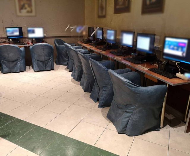 Κατά τον έλεγχο που πραγματοποίησε η αστυνομία διαπιστώθηκε ότι είχαν εγκατασταθεί (29) πλήρεις ηλεκτρονικοί υπολογιστές, συνδεδεμένοι με κεντρική μονάδα – server, στην οθόνη δύο (2) εξ’ αυτών εμφανίζονταν τυχερά παίγνια στα οποία συμμετείχαν οι παίκτες.