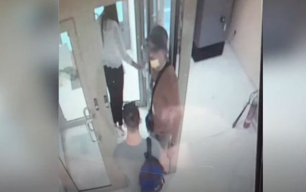 Είναι, συγκεκριμένα, η στιγμή που έχουν αφαιρέσει περίπου 11.000 ευρώ από τα ταμεία και βγαίνουν από την τράπεζα, χρησιμοποιώντας ως «ασπίδα» μια γυναίκα.