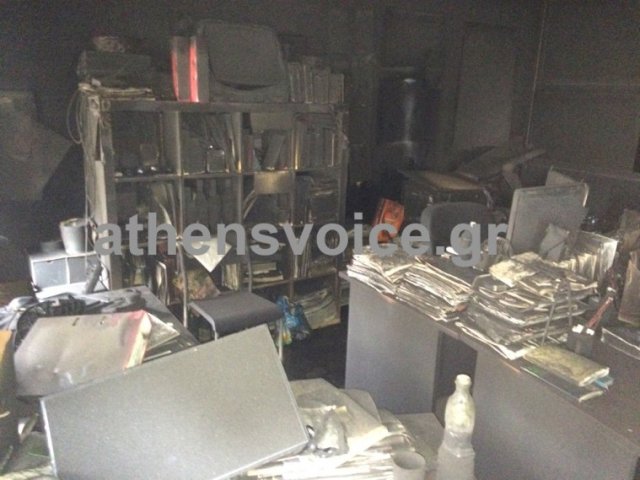 Οι καταστροφές στα γραφεία της Athens Voice επί της οδού Χαριλάου Τρικούπη 22 και Μαυρομιχάλη είναι εκτεταμένες.