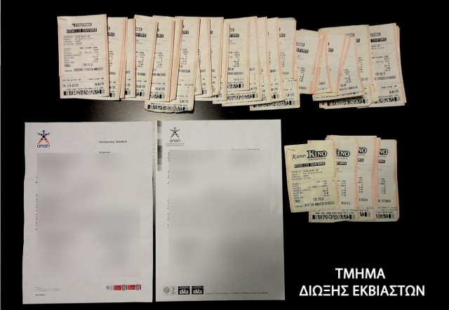 Επιπλέον, από την κατοχή και την οικία του δεύτερου συλληφθέντα, κατασχέθηκαν ονομαστικό ιδιωτικό συμφωνητικό αφηρημένης αναγνώρισης χρέους ποσού 25.000 ευρώ και μία βεβαίωση κερδών του ΟΠΑΠ για το έτος 2012, της τάξεως των 4.739,30 ευρώ.