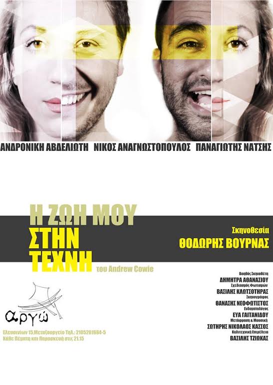 Η κωμωδία «Η ζωή μου στη τέχνη» του Άγγλου συγγραφέα Andrew Cowie (Άντριου Κάουι) ανεβαίνει από την Πέμπτη 24 Απριλίου 2014 και κάθε Πέμπτη και Παρασκευή στις 9:15 μμ, στο Θέατρο Αργώ (Ελευσινίων 15, Μεταξουργείο, Αθήνα, τηλ: 210-5201.684-5), μεταφρασμένη από τον Σωτήρη Νικόλαο Κάσσο και σε σκηνοθεσία του Θοδωρή Βουρνά.