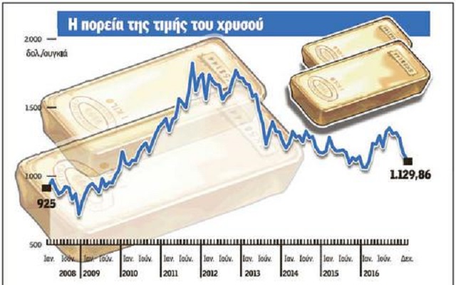 Στο πλαίσιο αυτό, ορισμένοι αναλυτές θεωρούν ότι το 2017 θα είναι η χρονιά που ο χρυσός θα βρεθεί κάτω από το ψυχολογικό «φράγμα» των 1.000 δολ./ουγγιά. Αλλοι όμως υιοθετούν πιο θετική στάση και εκτιμούν ότι μπορεί να διαψεύσει τις Κασσάνδρες και να κινηθεί ανοδικά, εάν οι επενδυτές «ποντάρουν» σε μεγάλη άνοδο του πληθωρισμού λόγω των πολιτικών Τραμπ (ιδίως εάν ο τελευταίος υλοποιήσει τα ακραία μέτρα εμπορικού προστατευτισμού που ευαγγελίζεται) και επιιδιώξουν να θωρακιστούν έναντι του κινδύνου αυτού.