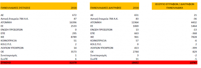 Συγκεκριμένα, το 2018 συστάθηκαν 5.441 επιχειρήσεις, ενώ έκλεισαν 2.459 επιχειρήσεις.
