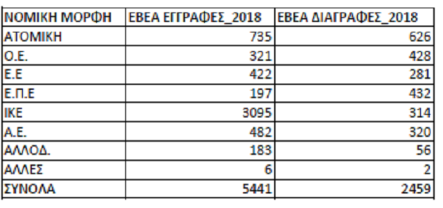 Παρατίθενται τα στοιχεία εγγραφών και διαγραφών του ΓΕΜΗ: