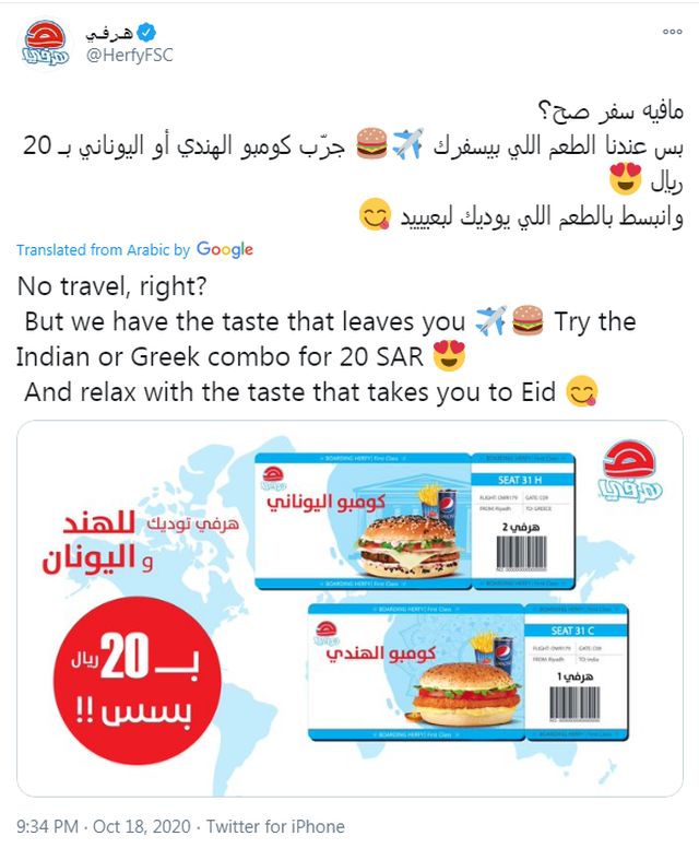 Σούπερ μάρκετ στο Ριάντ έβαλαν δίπλα στα νέα προϊόντα στις βιτρίνες ελληνικές σημαίες και μάλιστα η αλυσίδα fast food «Herfy Burger» μετονόμασε τη μερίδα του τουρκικού της χάμπουργκερ σε ελληνικό χάμπουργκερ μέσα σε γαλάζιο περιτύλιγμα, σύμφωνα με τα χρώματα της ελληνικής σημαίας.