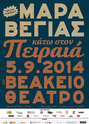 Ο Κωστής Μαραβέγιας για ακόμα μία χρονιά, την τρίτη κατά σειρά, επισκέπτεται το Βεάκειο Θέατρο Πειραιά με ακουστικά όργανα και ρεμπετο-τυμπανοκρουσίες, για μία και μόνο συναυλία την Παρασκευή 5 Σεπτεμβρίου 2014.