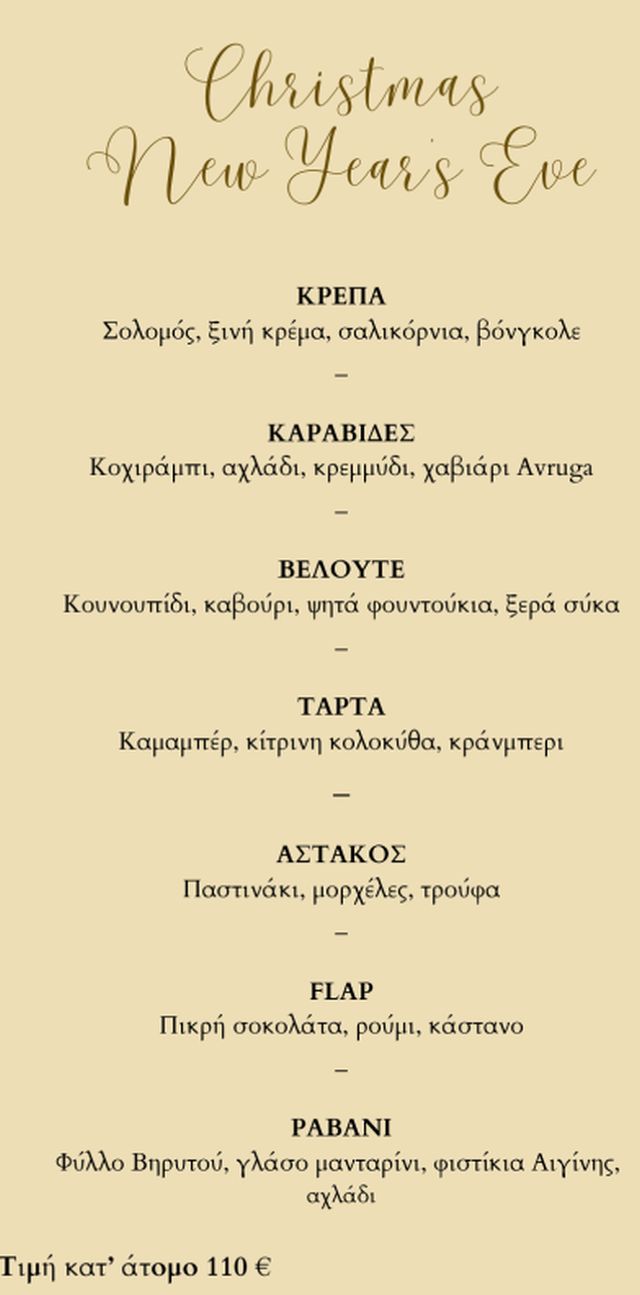 Το ειδικό εορταστικό μενού έχει κόστος 110 ευρώ/το άτομο.