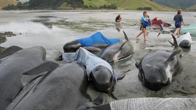 Περίπου 100 φάλαινες – πιλότοι από τις 200 που ξεβράστηκαν στην παραλία Φάργουελ, στα βόρεια της Νέας Ζηλανδίας είναι ήδη νεκρές, ενώ οι περιβαλλοντικές υπηρεσίες δίνουν μάχη για να διασώσουν τα υπόλοιπα θηλαστικά.
