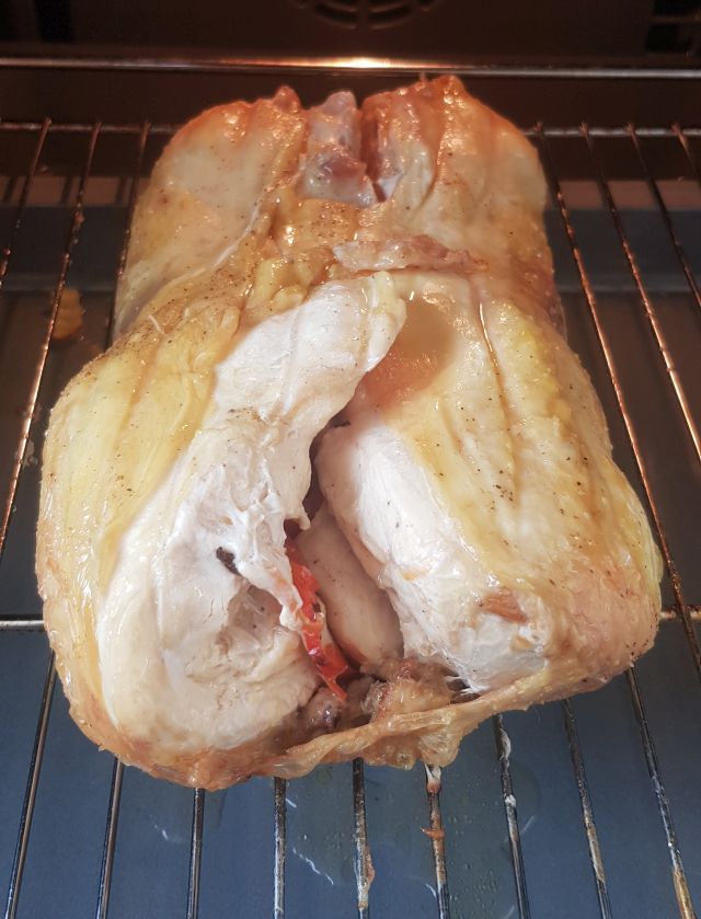 Την εκτέλεση θα την διαβάσετε στο ιστολόγιο του Δημήτρη Παπαζυμούρη, CUCINA CARUSO, μιας και από εκεί έχω πάρει την ιδέα εδώ και 2 χρόνια για το ξεκοκάλισμα του κοτόπουλου και τη γέμιση με τις πιπεριές.