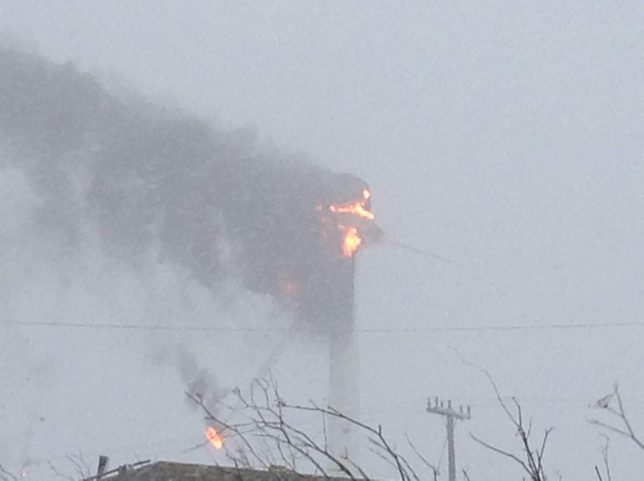 Το Πυροσβεστικό Σώμα έστειλε όχημα με ομάδα για πυρασφάλεια καθώς δε μπορεί να γίνει κατάσβεση λόγω ύψους.
