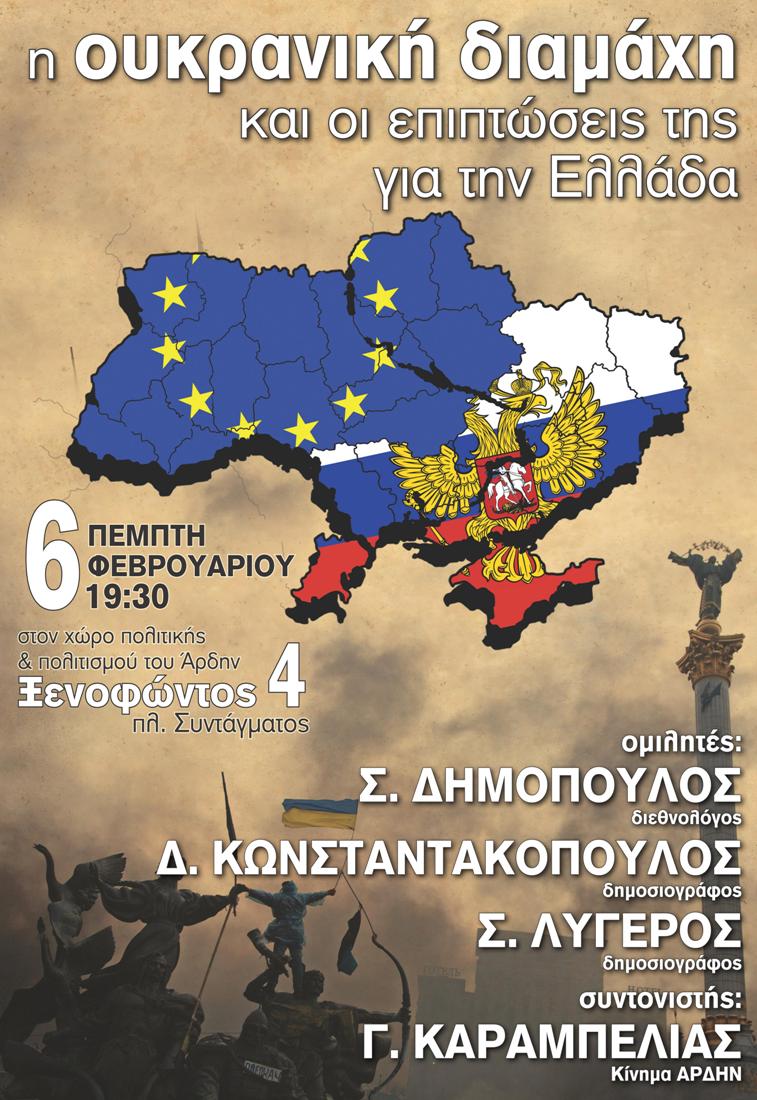 Το Άρδην οργανώνει την Πέμπτη 6 Μαρτίου στις 19.30 συζήτηση με θέμα: “Η ουκρανική σύγκρουση και οι επιπτώσεις της για την Ελλάδα”.