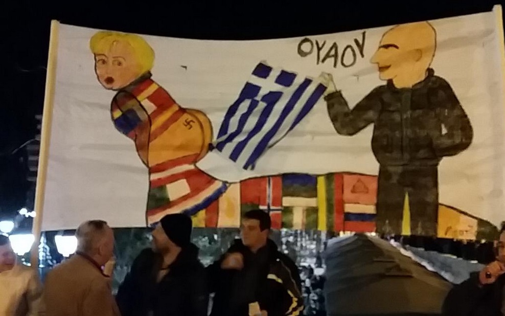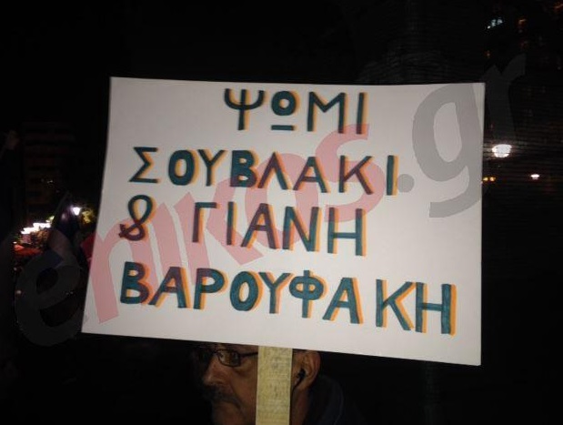 Αγαπημένος των διαδηλωτών στο Σύνταγμα ο Γιάνης Βαρουφάκης, ο οποίος έχει γίνει πανό, πλακάτ και σύνθημα.