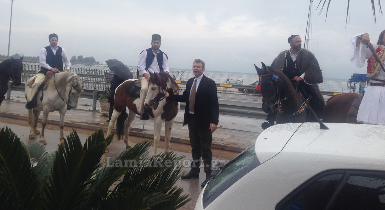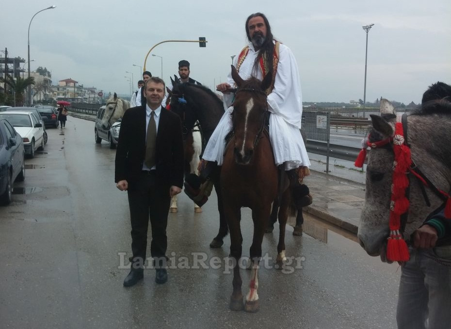Ο Δήμαρχος Στυλίδας, Απόστολος Γκλέτσος μπορεί να μην είδε την μαθητική παρέλαση που είχε προγραμματιστεί, καθώς οι καιρικές συνθήκες δεν το επέτρεψαν, αλλά οι Σακαρατσάνοι με τα άλογά τους δεν «μάσησαν».