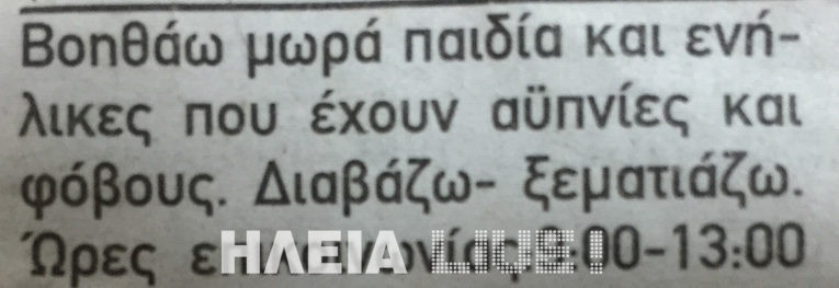 Είναι φορές που οι αγγελίες βγάζουν απίστευτα “μαργαριτάρια”. Πρόσφατα… αλιεύτηκε σε εφημερίδα της Ηλείας όπου δημοσιεύτηκε, η αγγελία της φωτογραφίας, όπως γράφει το ilialive.gr.