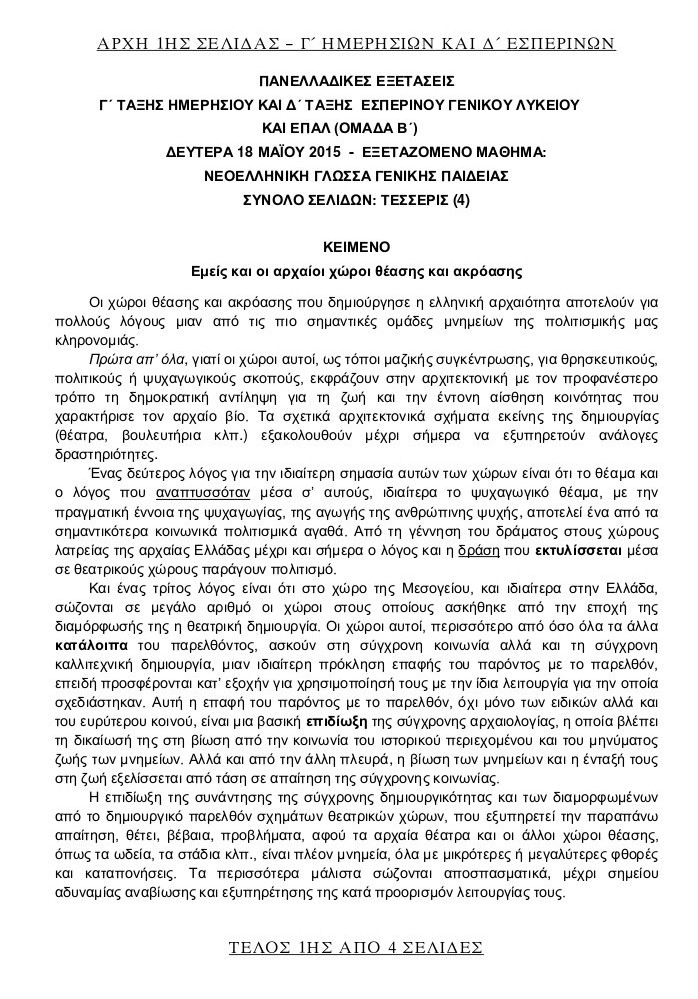 Οι εξετάσεις των υποψηφίων των ημερήσιων και εσπερινών Γενικών Λυκείων (ΓΕΛ) και των ημερήσιων και εσπερινών Επαγγελματικών Λυκείων (ΕΠΑΛ-ΟΜΑΔΑ Β΄), ξεκινούν με το μάθημα της Νεοελληνικής Γλώσσας και θα ολοκληρωθούν την Τρίτη 2 Ιουνίου, με το μάθημα επιλογής των Αρχών Οικονομικής Θεωρίας. Οι εξετάσεις των ειδικών μαθημάτων θα πραγματοποιηθούν στο διάστημα 17 έως και 24 Ιουνίου.