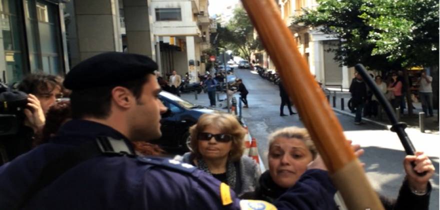 Την ώρα που οι αστυνομικοί τις απωθούσαν, μια καθαρίστρια κατάφερε να αποσπάσει το γκλομπ ενός άντρα των ΜΑΤ και τον ρώτησε: «Με αυτό θα μας χτυπήσετε;».