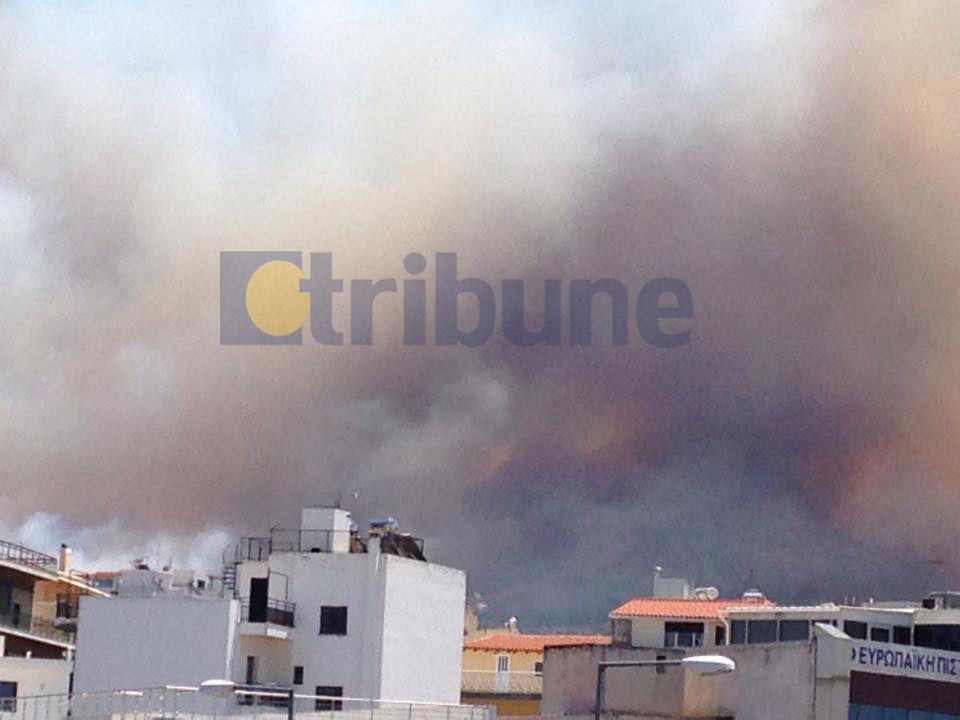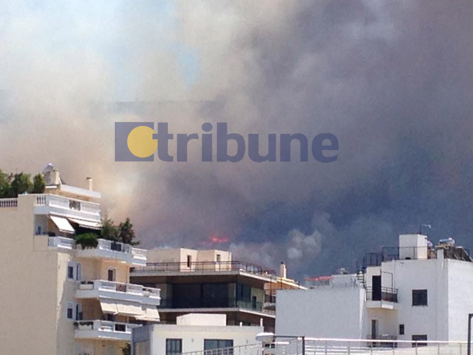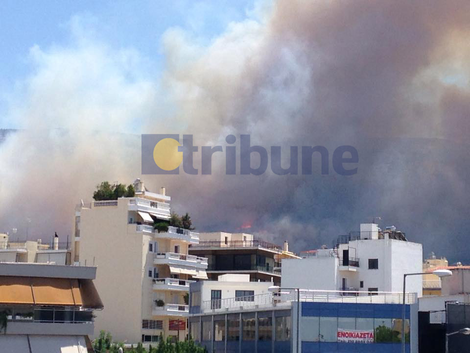 Η πυρκαγιά πλησιάζει σπίτια στην Ηλιούπολη. Δυνάμεις της Πυροσβεστικής και κάτοικοι δίνουν τιτάνια μάχη, με τους ισχυρούς ανέμους να σπρώχνουν ταχύτατα τη φωτιά σε κατοικημένες συνοικίες της Αθήνας.