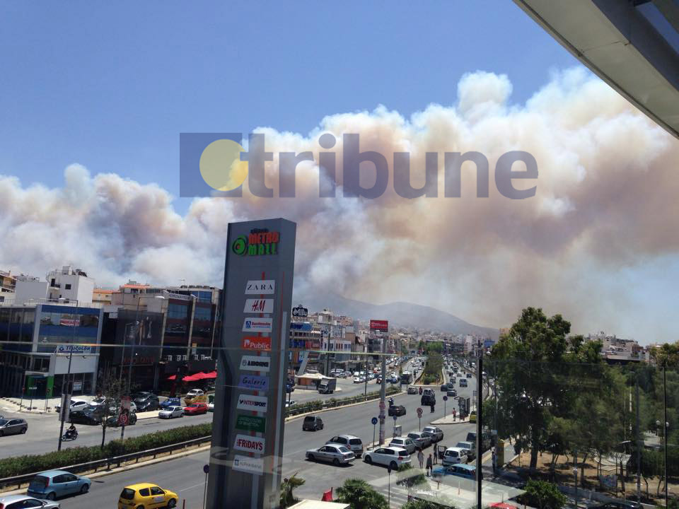 Η Αττική έχει σκεπαστεί από καπνό. Στο σημείο έχουν σπεύσει 30 άνδρες της πυροσβεστικής με 10 οχήματα, ενώ σπεύδουν και 2 ελικόπτερα.