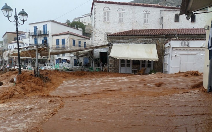 Δεκάδες σπίτια πλημμύρισαν από τους τόνους νερού και λάσπης που «κατέβαζαν» οι χείμαρροι, όπως αναφέρει το hydraspoliteia.blogspot.gr