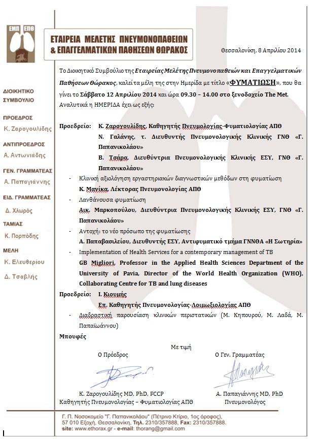 Διαβάστε την πραγματική ανησυχητική ανακοίνωση της Εταιρείας που την υπογράφουν ο καθηγητής Κ. Ζαρογουλίδης MD, PhD, FCCP και ο καθηγητής Ι. Κιουμής, MD, PhD: