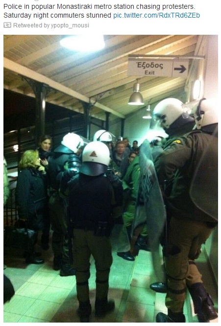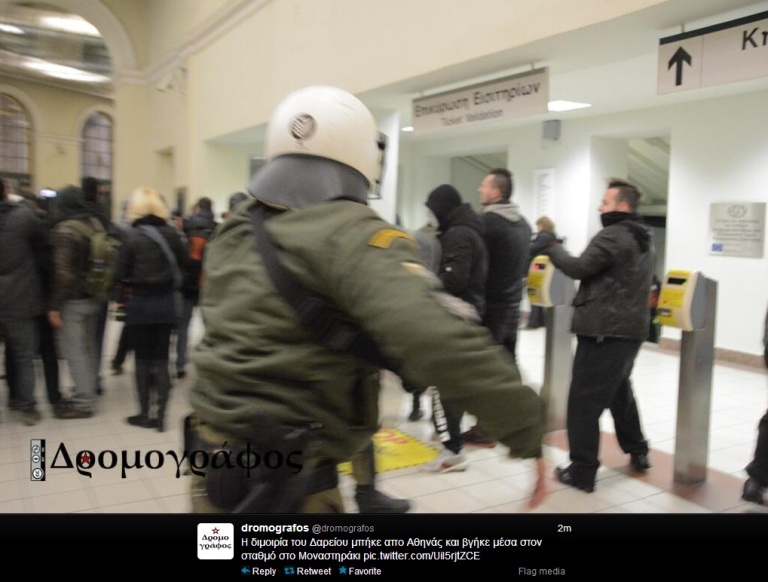 Στη συνέχεια οι αστυνομικοί απώθησαν τους διαδηλωτές μέχρι την πλατεία Μοναστηρακίου και τους σταθμούς του Ηλεκτρικού και του Μετρό.