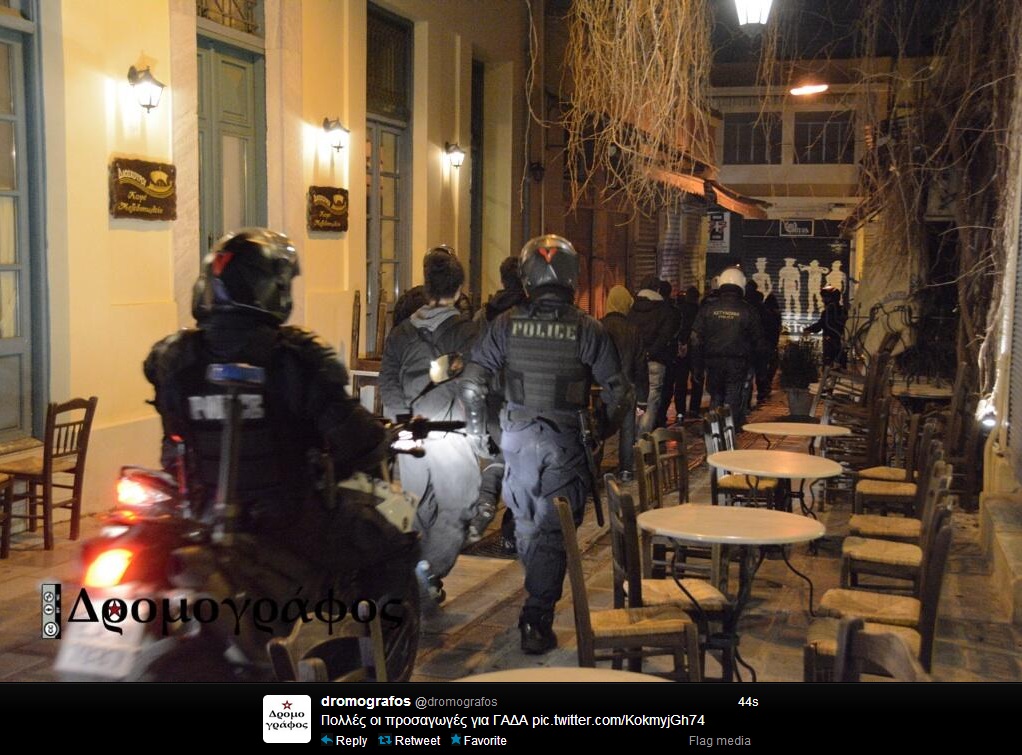 Εκεί ξέσπασαν νέα επεισόδια με τους αστυνομικούς να προχωρούν σε προσαγωγές και συλλήψεις.