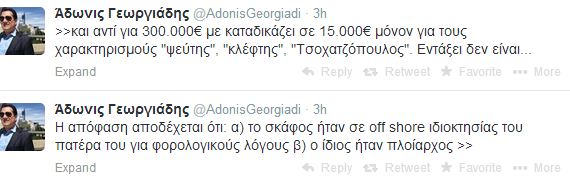 Την καταδίκη του σχολίασε και ο ίδιος o υπουργός στο twitter, σχετικά χαρούμενος που αντί για 300.000 ευρώ θα πληρώσει μόλις 15.000 ευρώ!
