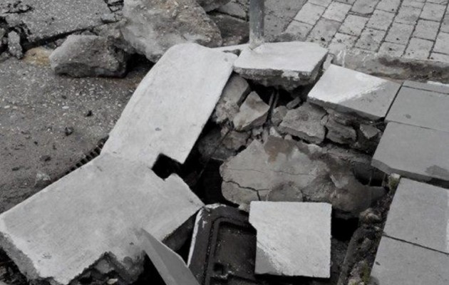 Ο φακός της Αντριάνας Καραντινού περιηγήθηκε στους δρόμους της πόλης και απαθανάτισε εικόνες που θυμίζουν βομβαρδισμένο τοπίο, με τη γη σε πολλά σημεία να έχει ανοίξει!