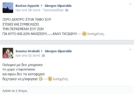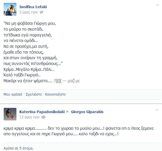 Από χθες η σελίδα του αδικοχαμένου Γιώργου έχει πλημμυρίσει από τις μαντινάδες που του αφιέρωσαν φίλοι και συγγενείς.
