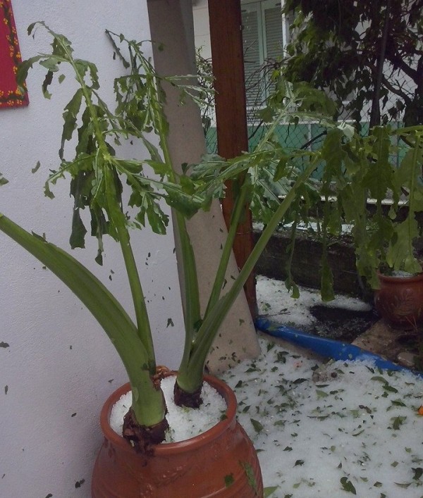Δε πίστευαν στα μάτια τους οι κάτοικοι των Καμένων Βούρλων όταν ξαφνικά άνοιξαν οι ουρανοί κι έπεσε χαλάζι.