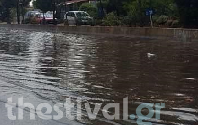 Στην Ε.Ο. Θεσσαλονίκης – Μουδανίων με κατεύθυνση προς τη Χαλκιδική, τα οχήματα κινούνται με ιδιαίτερα χαμηλές ταχύτητες, καθώς το οδόστρωμα έχει πλημμυρίσει από το δυνατό μπουρίνι.