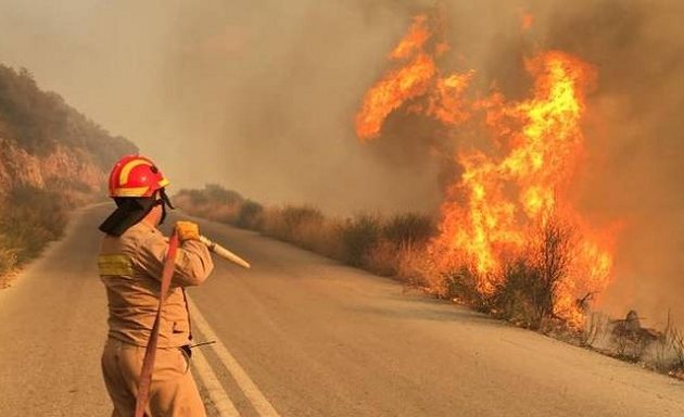 Η φωτιά καίει χαμηλή βλάστηση και όπως αναφέρθηκε από την Πυροσβεστική δεν πλησίαζε κατοικημένη περιοχή, αλλά κατευθυνόταν σε μια χαράδρα, ενώ και εκεί πνέουν ισχυροί άνεμοι.
