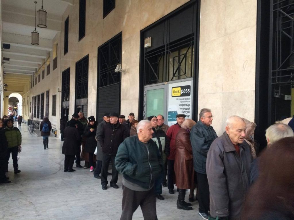 Ουρές σχηματίζουν από νωρίς το πρωί της Πέμπτης οι συνταξιούχοι στα υποκαταστήματα τραπεζών σε ολόκληρη τη χώρα, προκειμένου να λάβουν τη “13η σύνταξη” και το ΕΚΑΣ.
