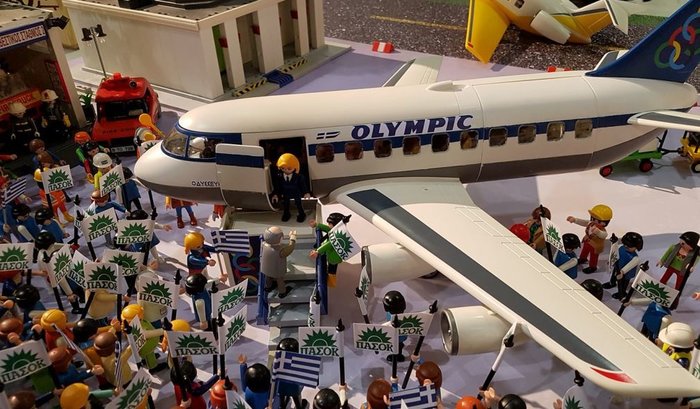 Η πραγματικά πολύ επιτυχημένη αναπαράσταση με Playmobil παρουσιάζεται στην έκθεση GR80s για την Ελλάδα της δεκαετίας του 1980, που φιλοξενείται στην Τεχνόπολη.