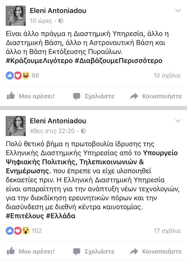 Το δικό της σχόλιο για τα όσα γράφονται και λέγονται έπειτα από την ανακοίνωση της κυβέρνησης για την ίδρυση Ελληνικής Διαστημικής Υπηρεσίας, έκανε η Ελληνίδα της NASA, Ελένη Αντωνιάδου.
