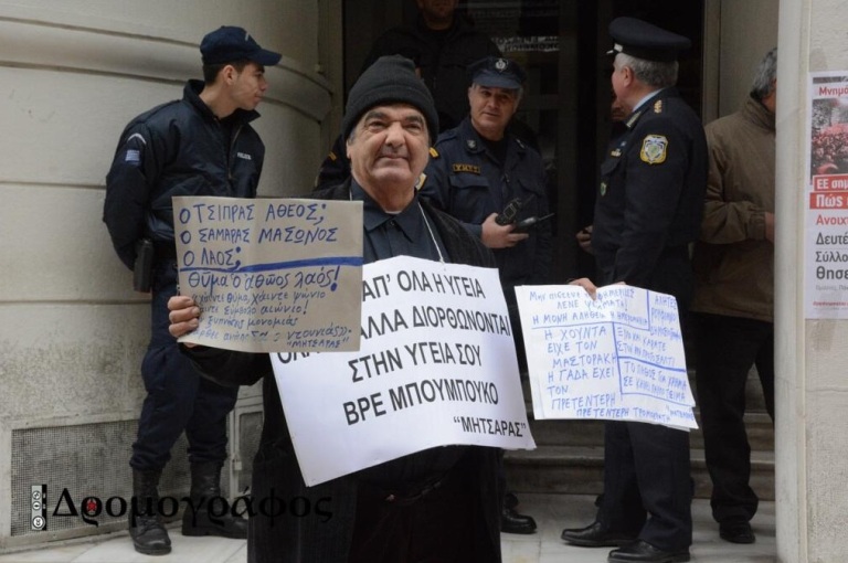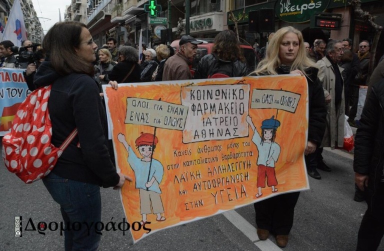 Οι συγκεντρωμένοι διαμαρτύρονται ενόψει της ψήφισης του νομοσχεδίου για την Πρωτοβάθμια Φροντίδα Υγείας.